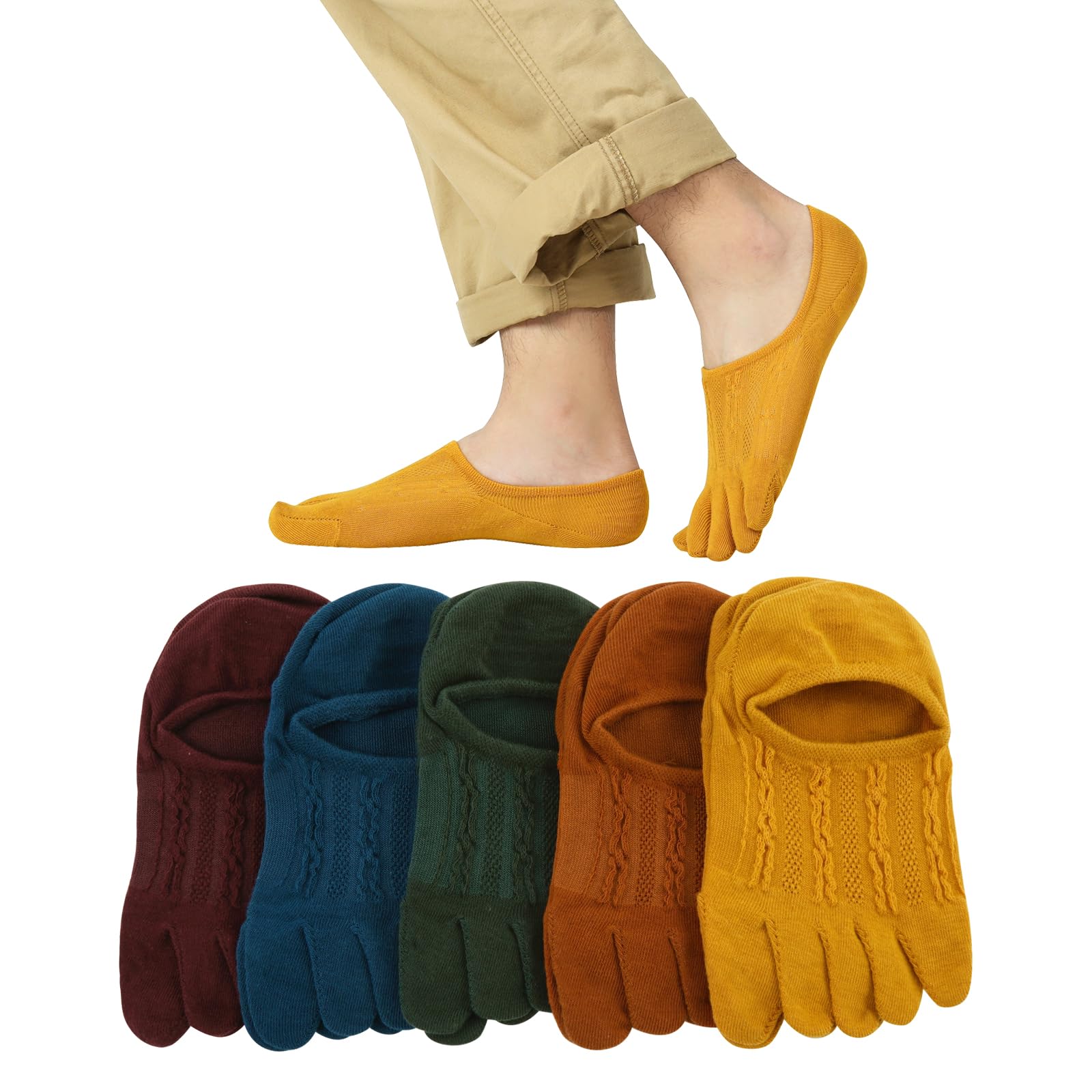 [DAMILY] 五本指ソックス メンズ くるぶし 夏 靴下メンズ 5本指ソックス 綿 メッシュ ショート 脱げにくい フットカバー 男性用 夏 スポーツ通気 5本指靴下 蒸れない おしゃれ 五本指 くつした5足セット 24-27cm
