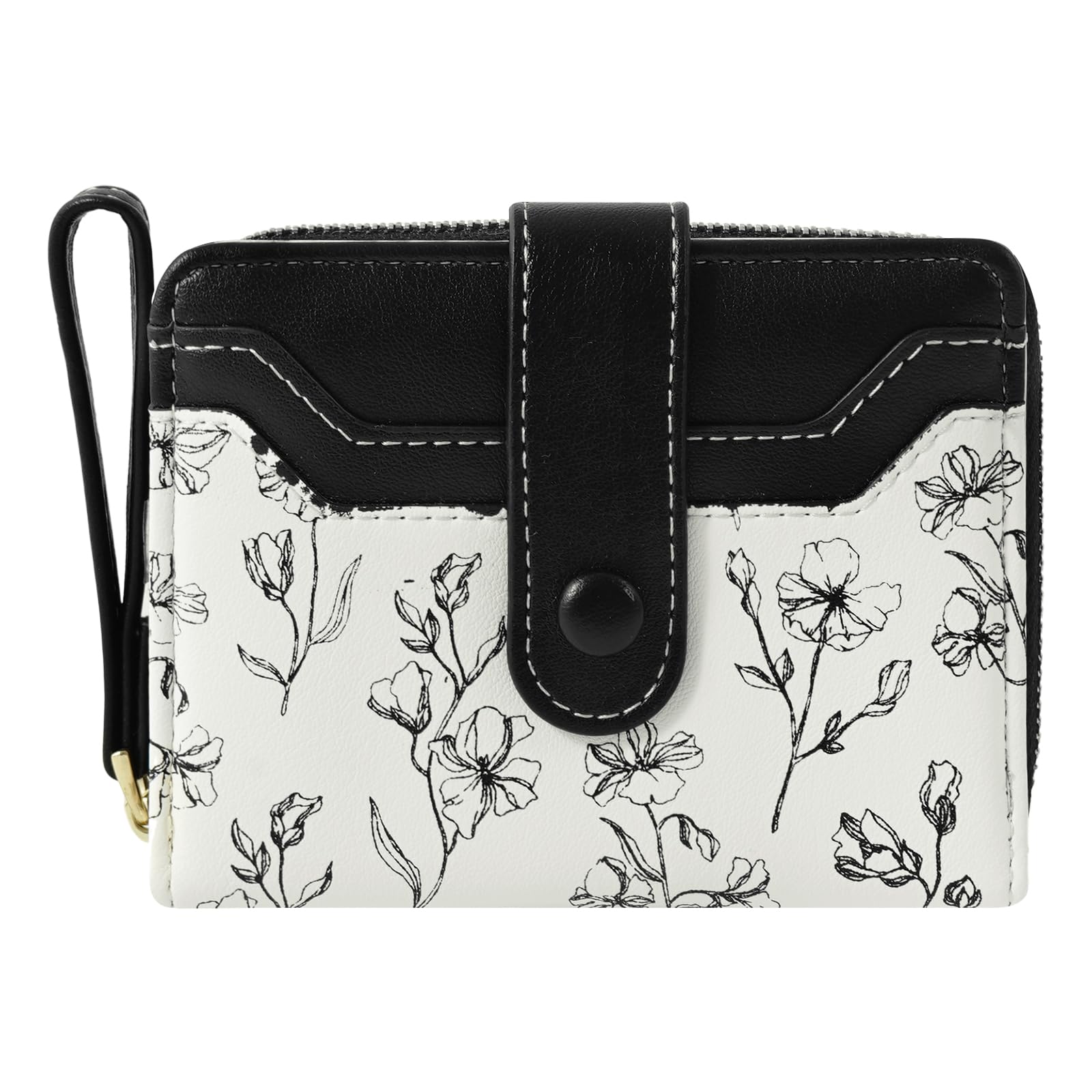 [DAMILY] 財布 レディース 2つ折り ミニ財布 小銭入れ カード入れ 大容量 ミニウォレット 花柄 コンパクト 小さい お財布 二つ折り財布 可愛い プレゼント(ブラック)