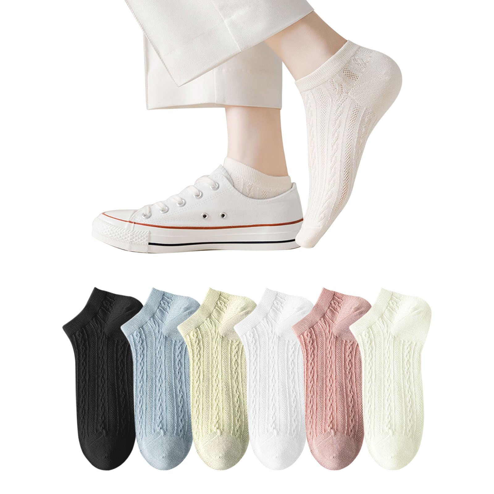 [DAMILY] 靴下 レディース くるぶし 夏用ソックス 綿 くつした 無地 蒸れない靴下 女性用 ショートソックス 6足セット 通気性 夏くつ下 22-25cm