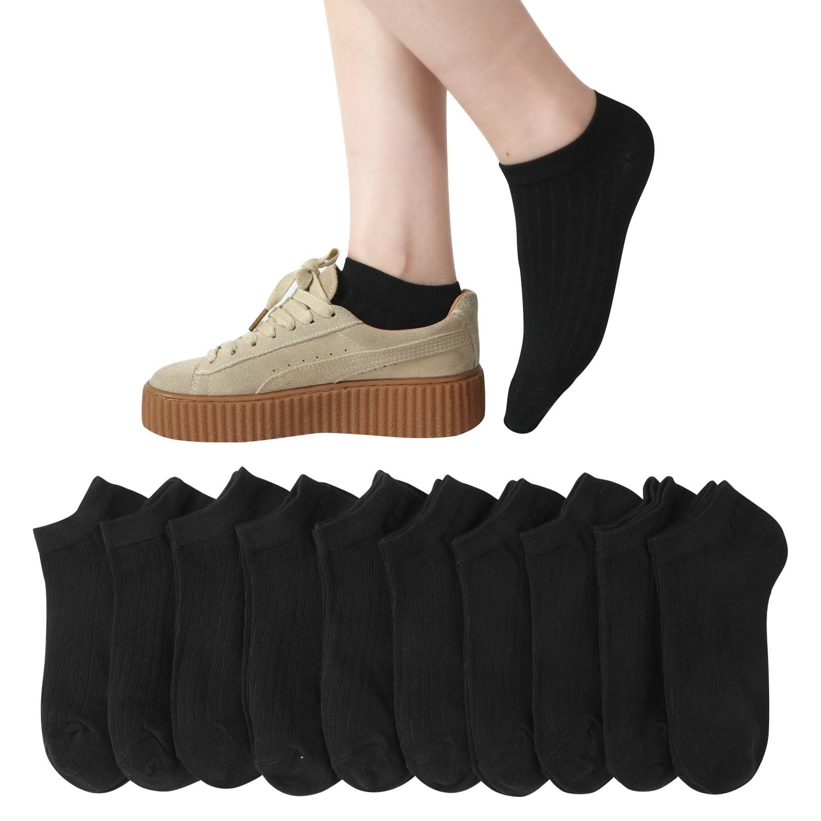 [DAMILY] 靴下 レディース くるぶし 黒 夏用 ショートソックス 10足セット 綿 女性用靴下 蒸れない 脱げない スニーカーソックス 吸汗速乾 22-25cm
