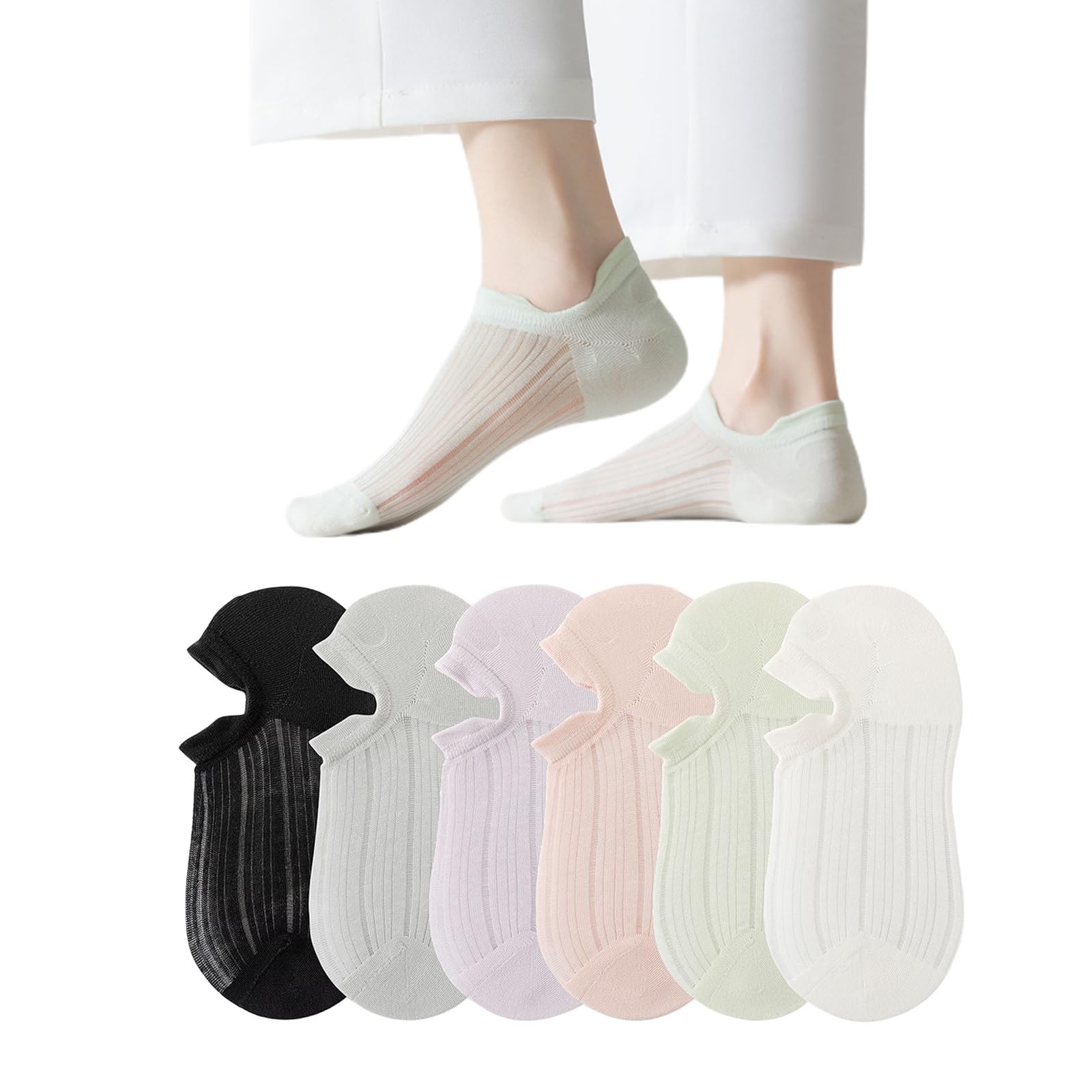 [DAMILY] 靴下 レディース シースルー 夏 くるぶしソックス 通気 透明靴下 涼しい 蒸れない 脱げない スニーカーソックス ショート丈 6足セット 夏用くつ下 薄手 22.5-24.5cm