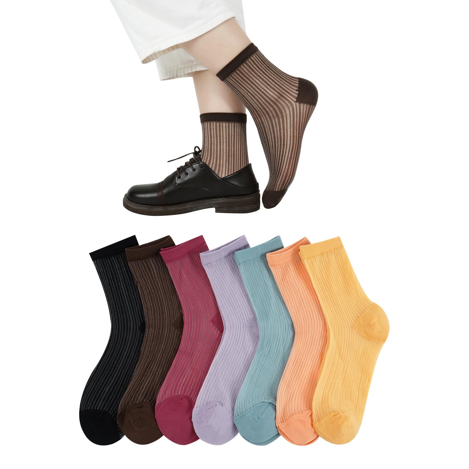 [DAMILY] 靴下 レディース シースルー 夏 クルーソックス レース靴下 おしゃれ 蒸れない くつした 女性用 婦人 夏用 シースルーソックス 7足セット 22-24.5cm