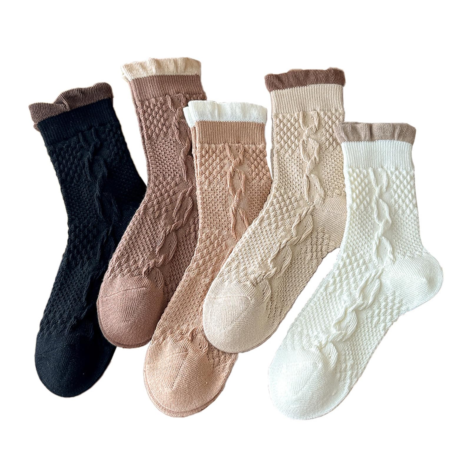 [DAMILY] 靴下 レディース ソックス かわいい 春夏用 綿 女性靴下 おしゃれ フリル 蒸れない くつした レディース 白 カラフルソックス クルー丈 5足セット 通勤通学 秋冬くつ下22-25cm