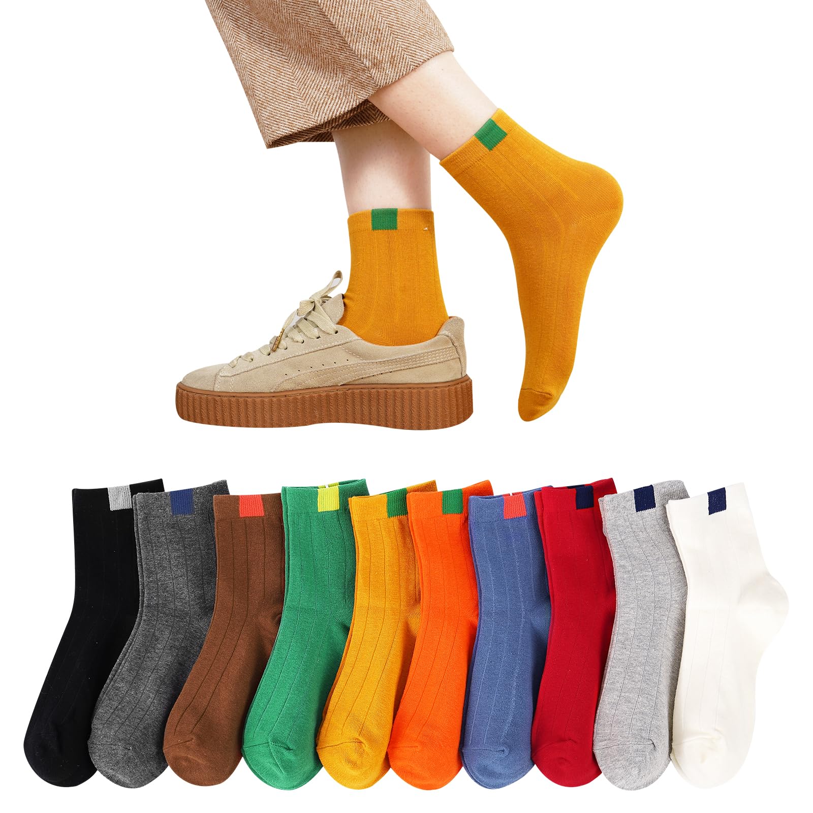 [DAMILY] 靴下 レディース ソックス 春夏秋冬 10足セット 綿 くつした カラフルソックス おしゃれ 女性靴下 蒸れない 通気性 抗菌防臭 ミドル丈ソックス カジュアル 通勤通学 保温くつ下 くるぶし 22-25cm