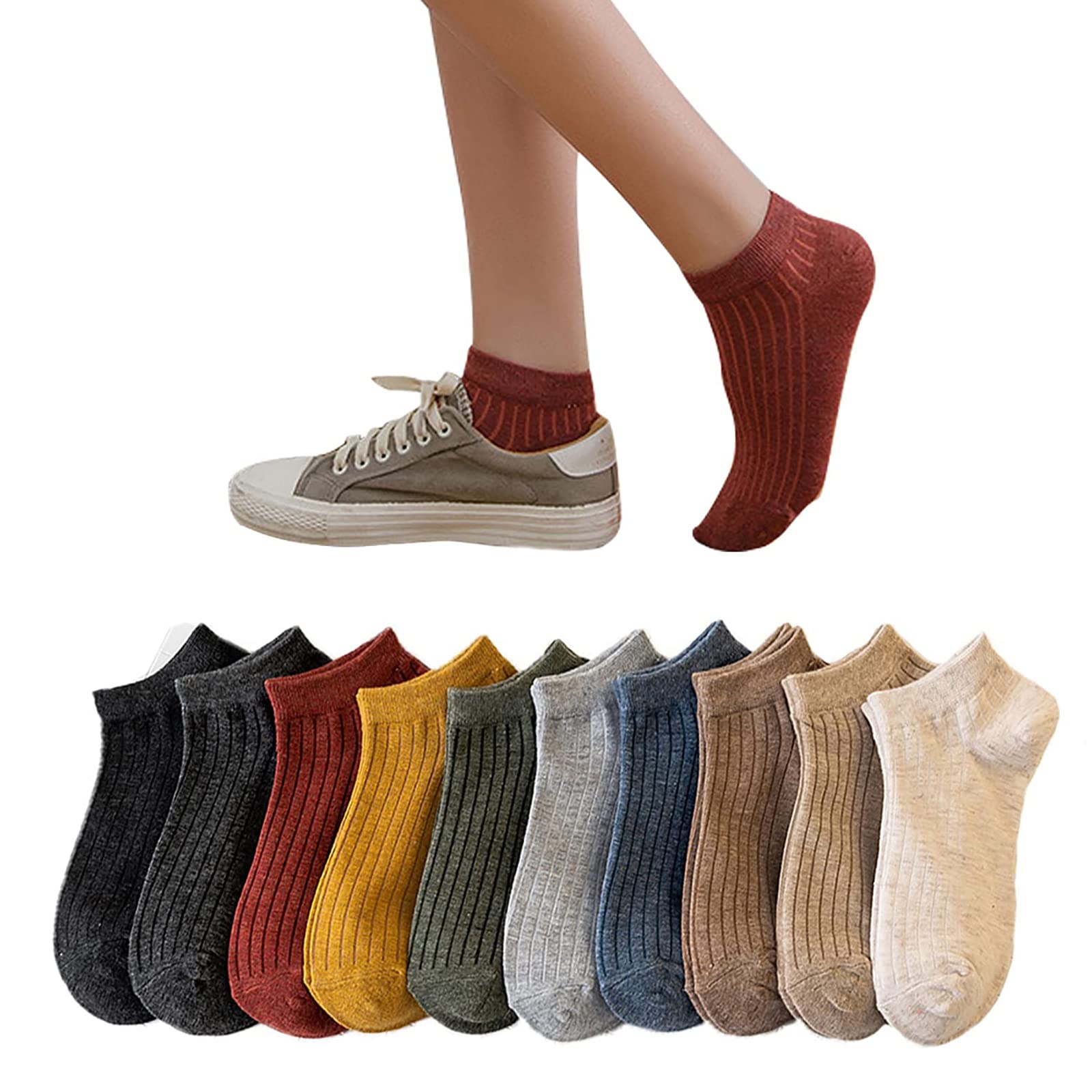 [DAMILY] 靴下 レディース 夏 くるぶしソックス かわいい 10足セット 綿 踝 くつした レディース おしゃれ スニーカーソックス 薄手 女性 靴下 短い くつ下 蒸れない 脱げない ショート ソックス 室内 アウトドア 22-25cm