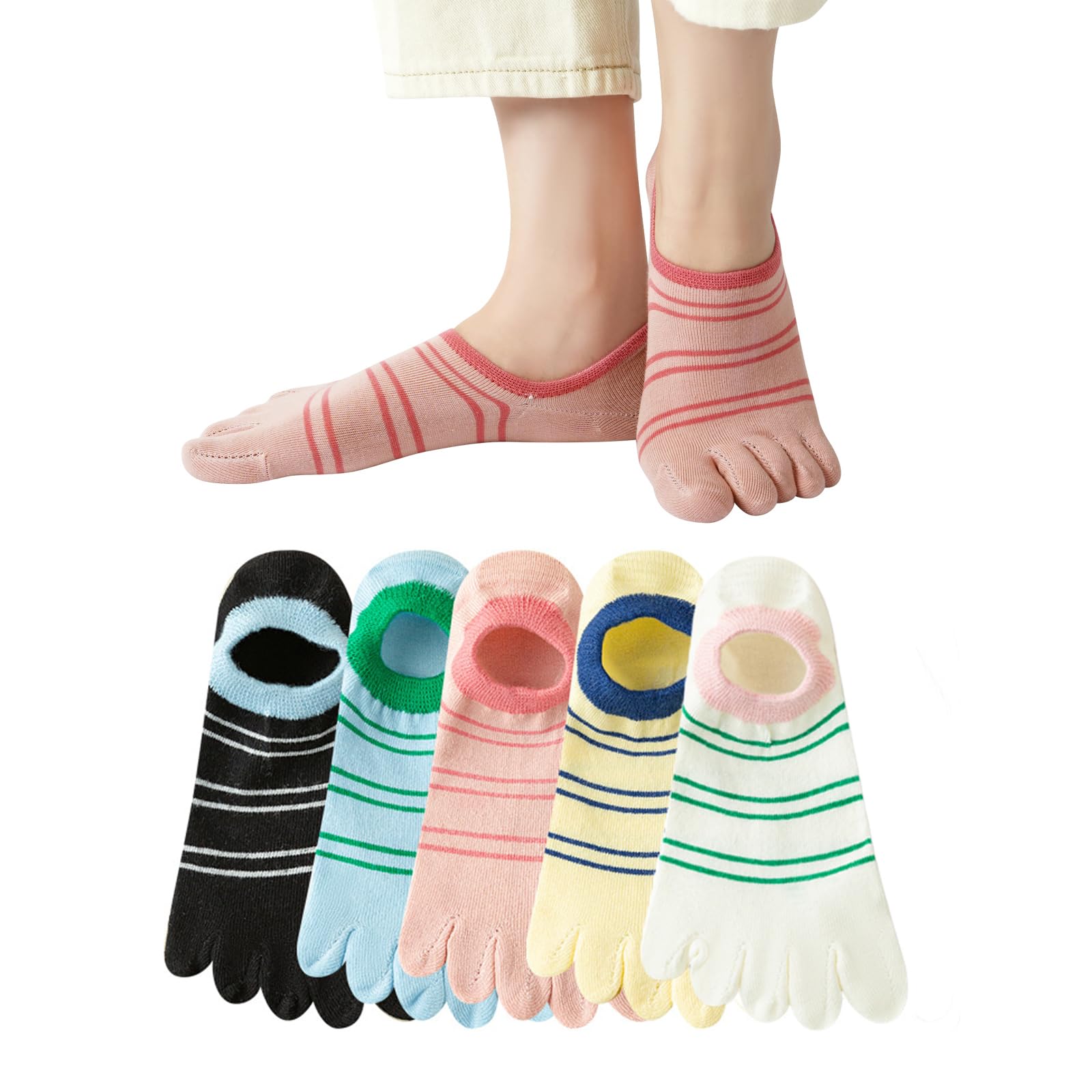 [DAMILY] 5本指ソックス レディース くるぶし 夏 蒸れない 脱げない靴下 五本指ソックス フットカバー 女性用 綿靴下 通気性 吸汗速乾 5足セット 22-25cm