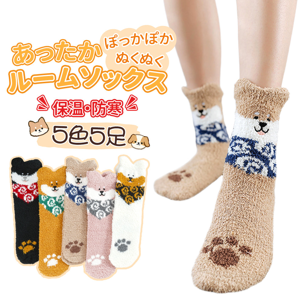 ルームソックス もこもこ靴下 レディース モコモコ 冬 あったか 暖かい 22-25cm アニマル柄 可愛い 冷え取り厚手 ふわふわ おしゃれ 猫 犬 あったかソックス 室内履き 睡眠ソックス 女の子